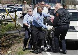 Monroe Fire Department Paramedics transport the victim of a recent shooting to the ambulance.