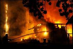 In situations like this where the house is fully involved in fire upon arrival, one of the primary goals is to extinguish the fire while insuring it does not cause damage or spread to neighboring structures. |